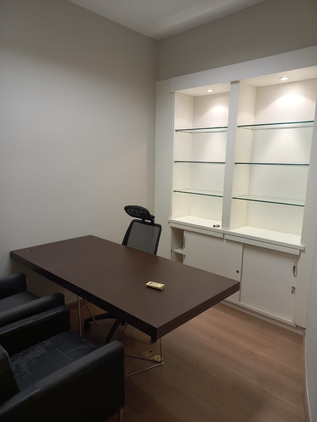 Sala com 64,33 m² à venda no THE MALL, com bela decoração e aparelhos de ar condicionado.